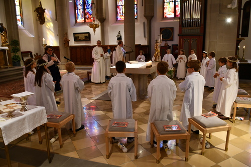 In der Vorbereitung auf die Erstkommunion wachsen die Kinder und ihre Familien Schritt für Schritt in diese sonntaägliche Feier hinein. In dem wir miteinander Gottesdienst feiern, das Wort Gottes hören, singen und beten.