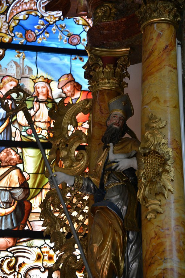 Langhaus: links hl. Anna mit Maria, hl. Michael, hl. Agnes, rechts. hll. Josef, Heinrich, Stanislaus