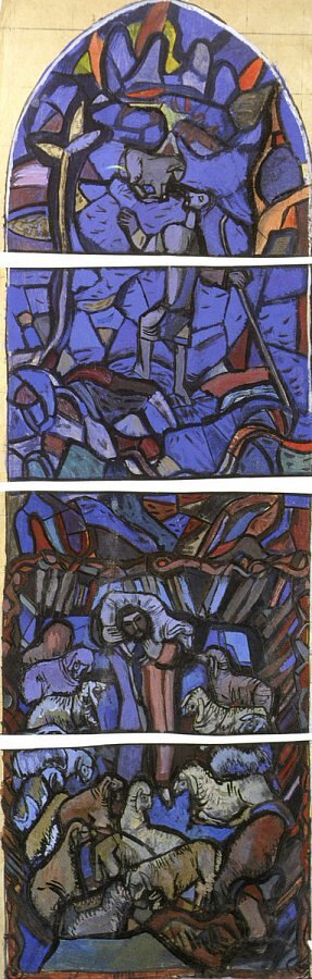 Martin Häuse, Der Gute Hirte, Original Entwurf auf Karton in der Größe der Fenster, 1958