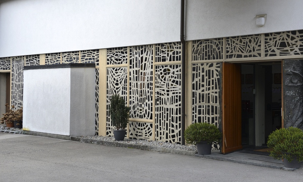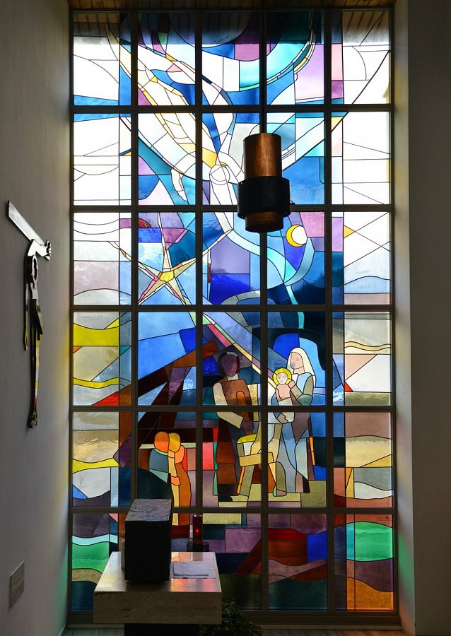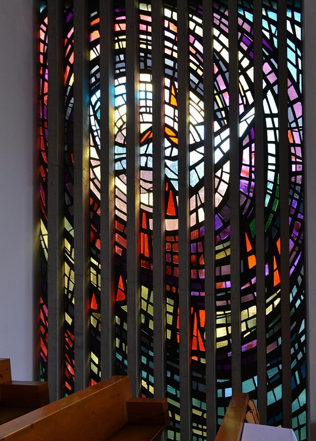 Betonglasfenster 1962 von Adolfo Winternitz, Ausführung durch die Firma Vitraux Vve. Chiara (Lausanne, Schweiz)