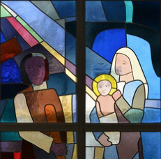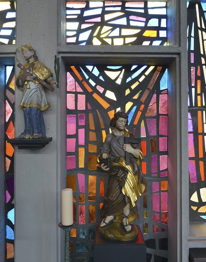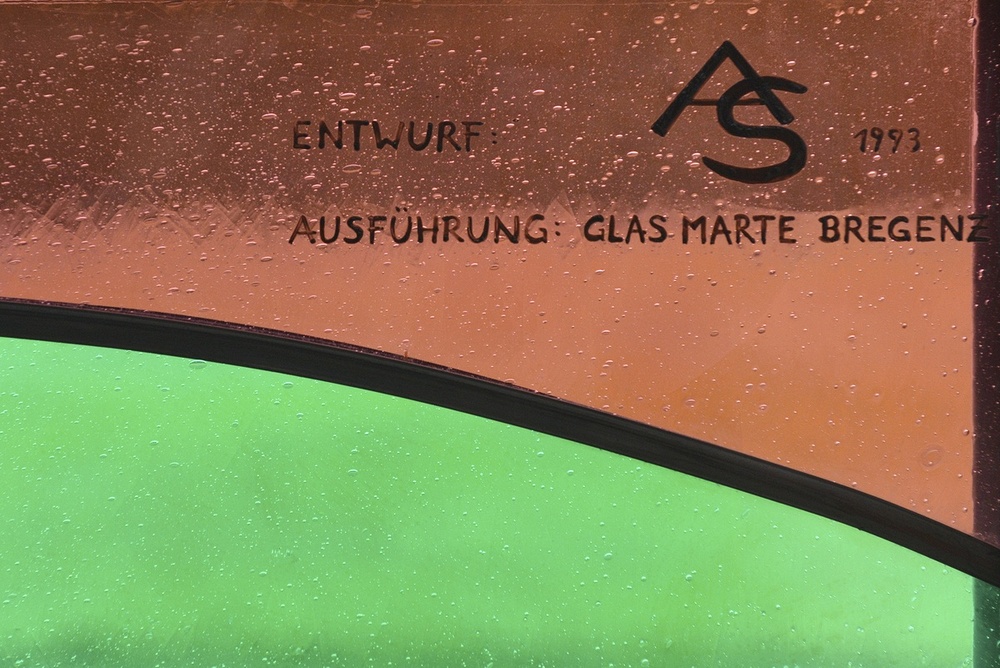 Später zusätzliche Fenster: Heilige Familie, Josef Zimmermann; Entwurf AS, Ausführung Glas Marte Bregenz 1993