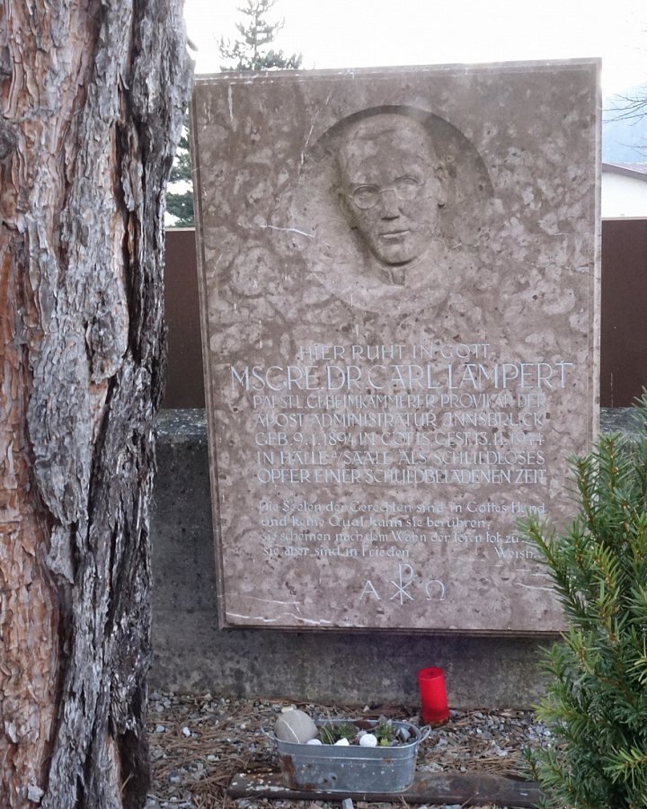 Göfis, Pfarrkirche Hl. Luzius, Friedhof, Grabmal Msgr. Dr. Carl Lampert geb. in Göfis, ermordet 1944