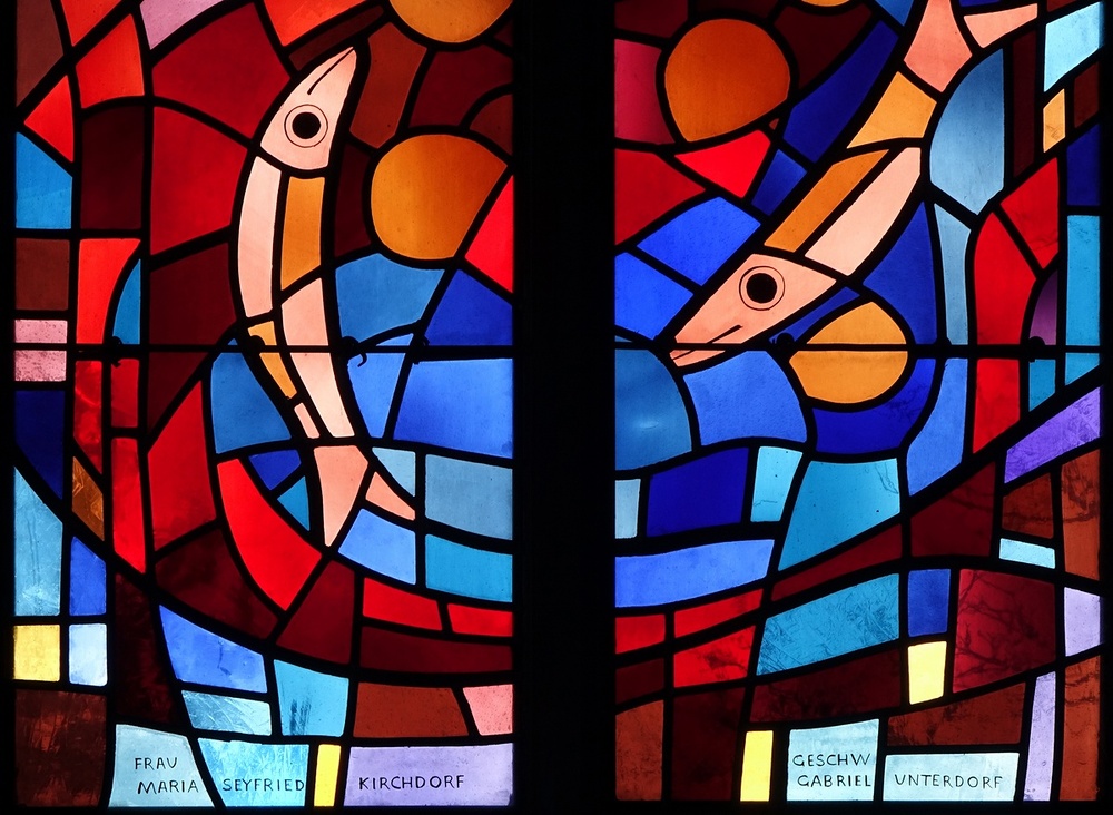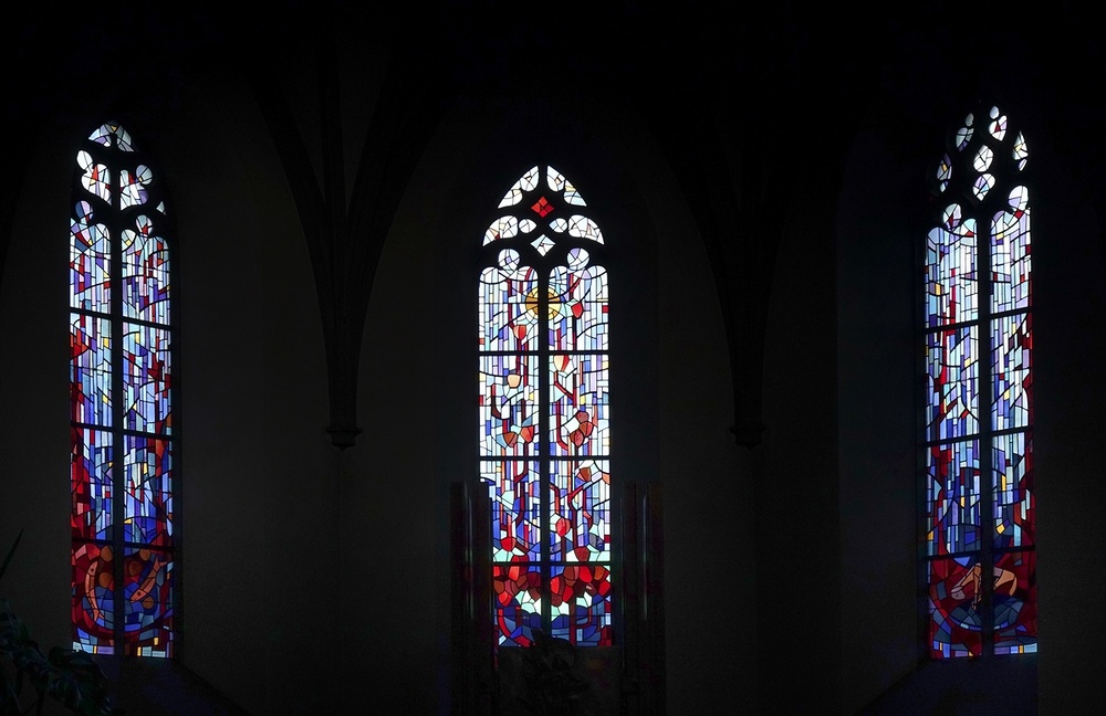 Glasmalereien 1974, Entwurf Albert Wider, Ausführung Glasmalereianstalt Loire