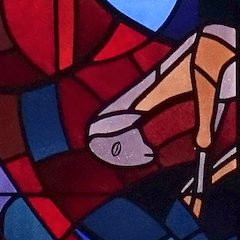 Göfis, Pfarrkirche Hl. Luzius, Detail, Fenster Albert Wider, Widnau 1974, Ausführung Loire Chartres