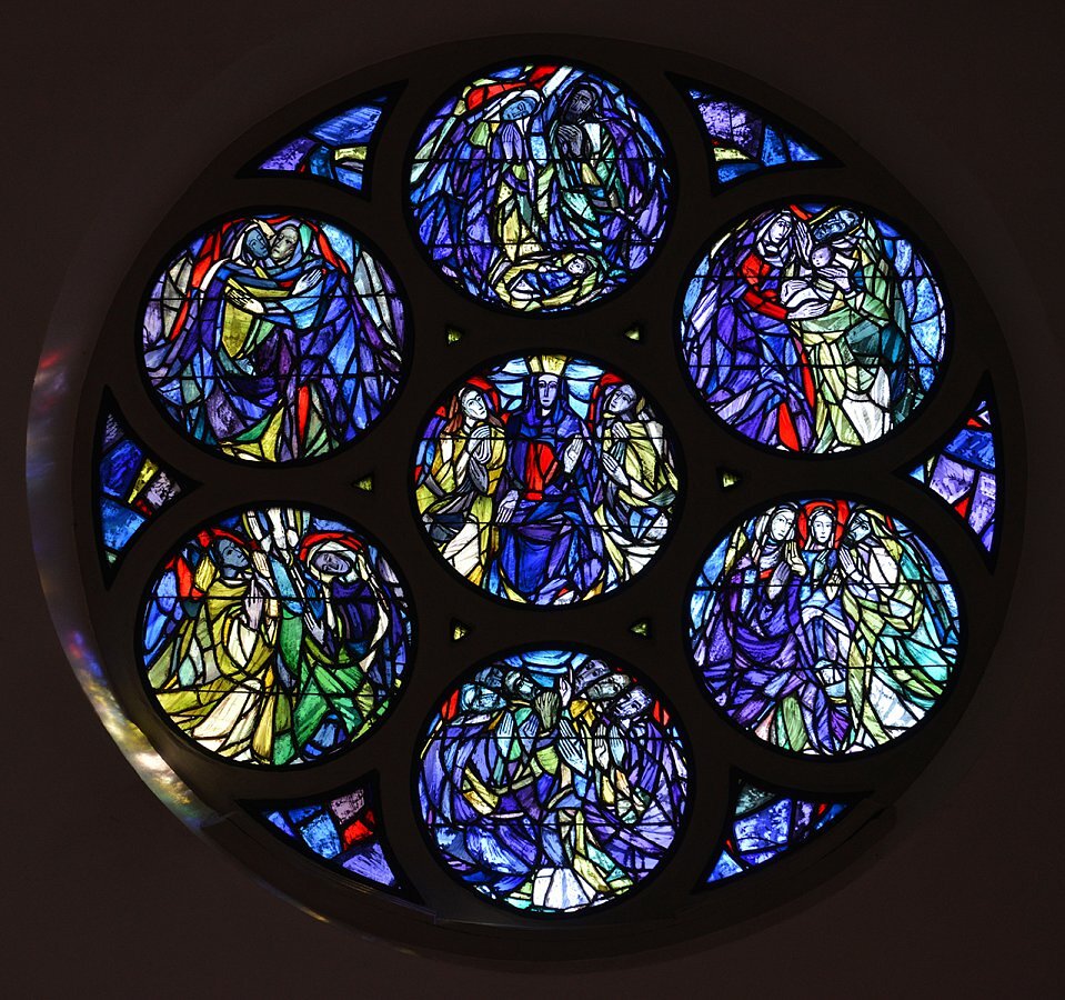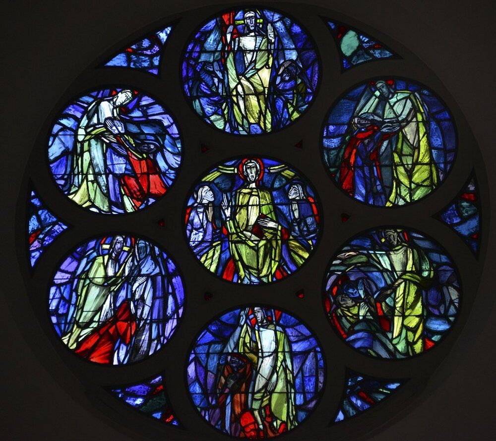 Fensterrosetten Fassade und Querschiff von Mila Bjelik-Stöhr, 1946