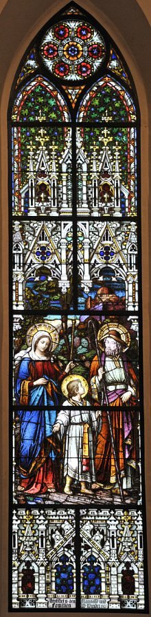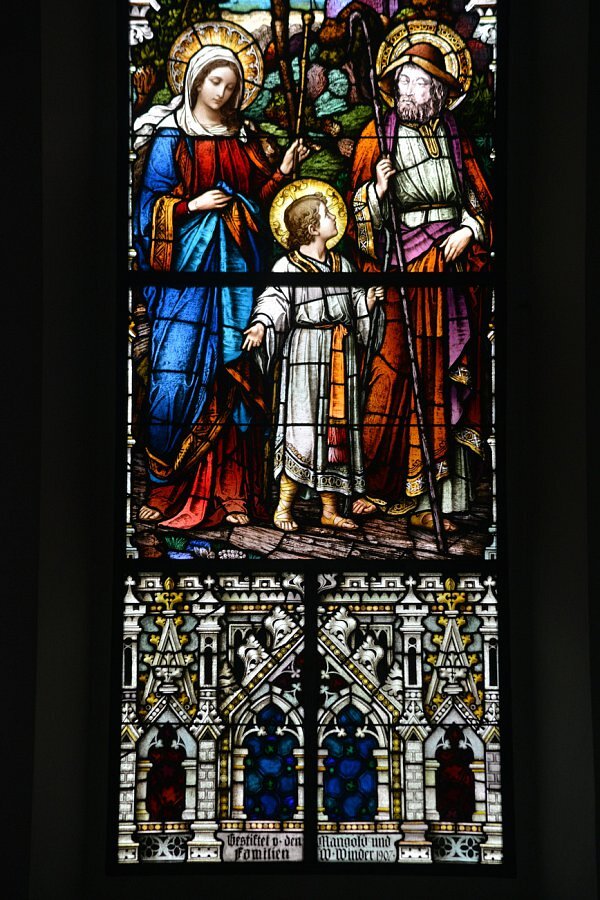 Kennelbach, St. Josef, Hl. Familie auf der Flucht 1908 Tiroler Glasmalerei Innsbruck