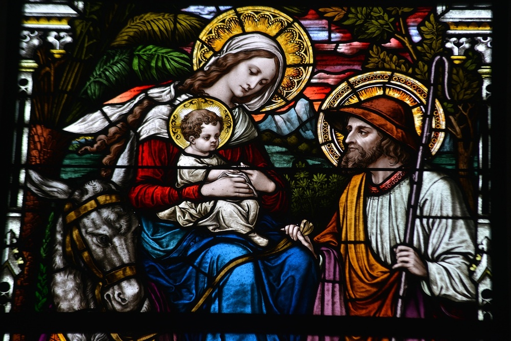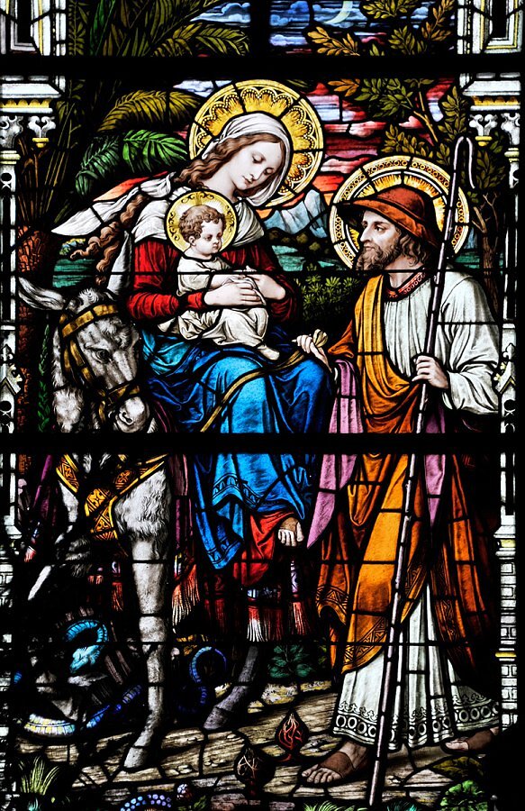 Hl. Familie auf der Flucht, 1908 Tiroler Glasmalerei Innsbruck