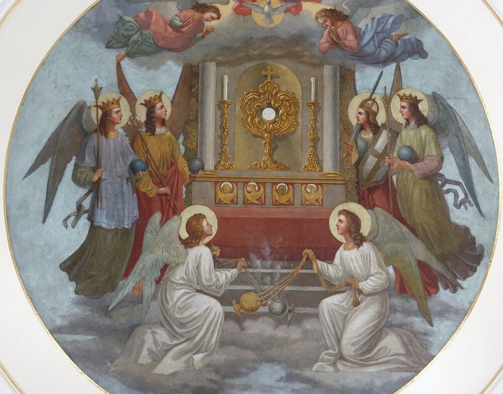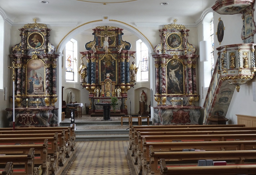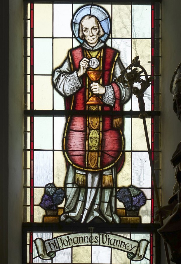 im Chor li. hl. Johannes Vianney, re. hl. Gebhard und Lamm Gottes