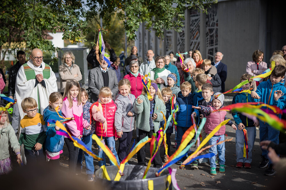 19. Oktober 2025: Freude und Dankbarkeit waren beim Familiengottesdienst in Schoren zu spüren. Kunterbunte Kastanien flogen durch die Luft und zauberten Groß und Klein ein lächeln ins Ge