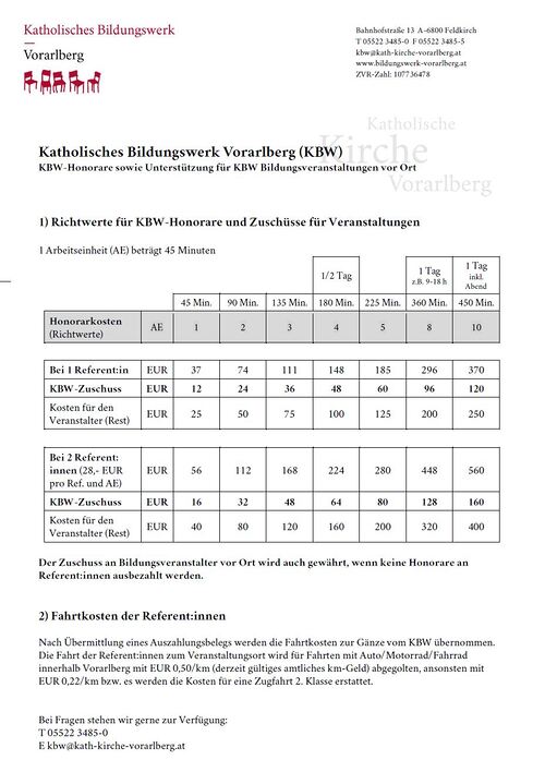 für Ihre Veranstaltung über das Katholische Bildungswerk Vorarlberg